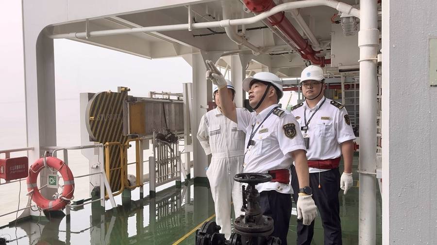 在“宁远天津”轮,东莞沙田海事处执法人员重点检查风雨密门、货舱舱盖、通风筒、空气管、锚链筒口盖等甲板开口封闭位置的水密性,提醒船员要严格按照规定进行货物装载,并由船长确认装载符合要求,确保规范系固绑扎。并要求码头密切关注雷雨大风、台风等恶劣天气,充分评估恶劣天气对船舶装卸货的影响,科学合理做好船舶调度工作,避免出现因装卸货不及时导致船舶重载集装箱在辖区防台避风。